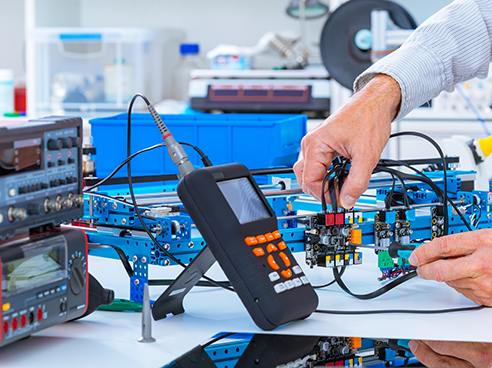 Making simple functional testing or advanced measurements using: multimeters, oscilloscopes, spectrum analyzers, logic analyzers, protocol analyzers, vector network analyzers, LCR meters and other specialized instruments.
