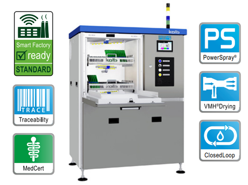 A fully automated four step process: cleaning, rinsing (tap water, DI water rinsing) with conductivity monitoring, evaporative drying.